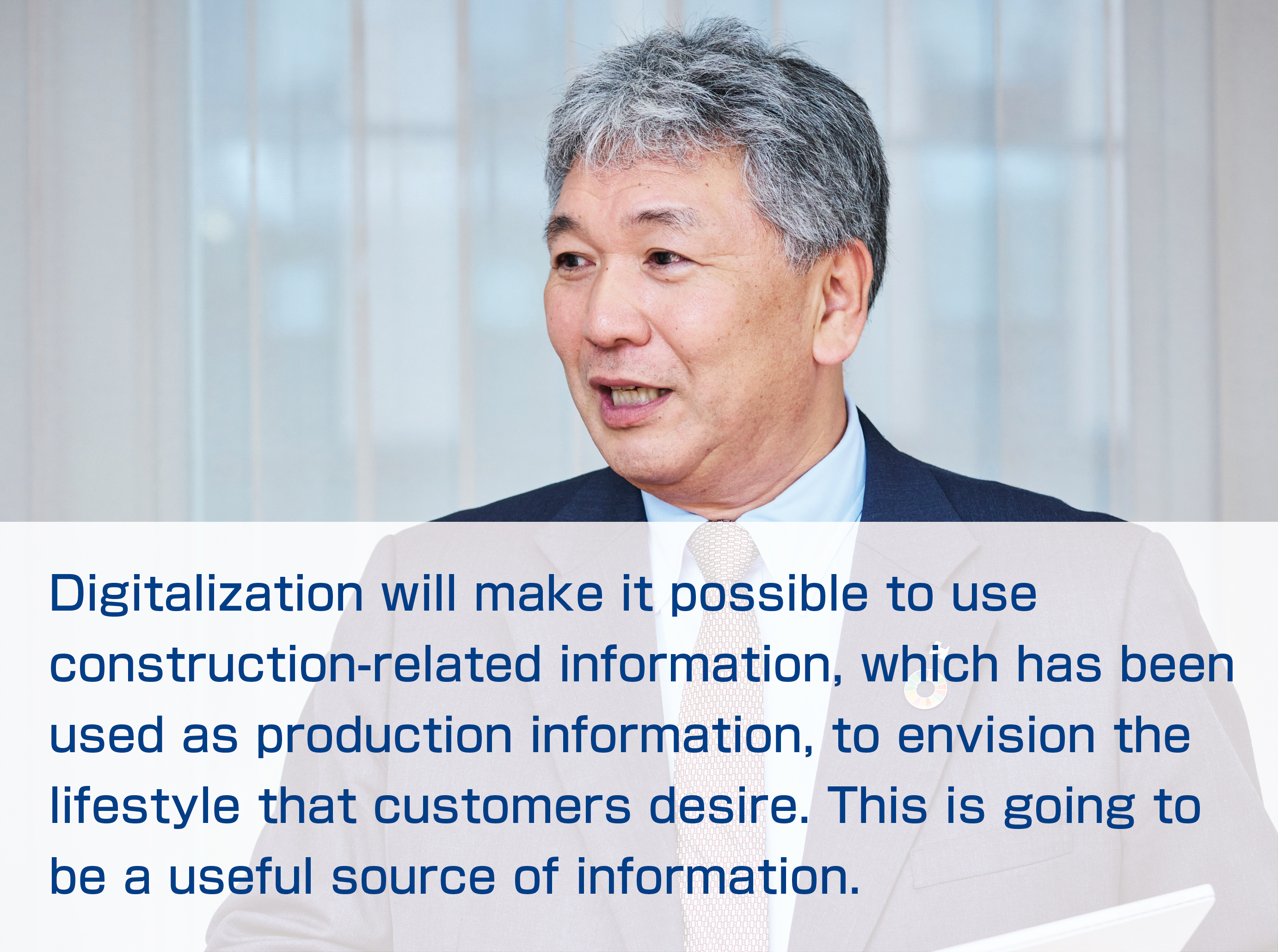 In the condominium-related business, design and construction are B-to-B, while services are B-to-C activities. Up to this point, each company has been working to digitalize and digitally transform their operations separately, but in the end, it is necessary to merge them, and I believe that this will further enhance the Haseko Group's competitive advantage.