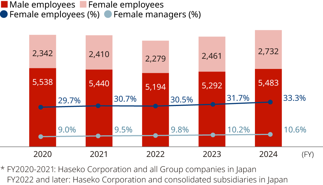 The Haseko Group aims to provide fair opportunities for all employees to flourish, regardless of gender.