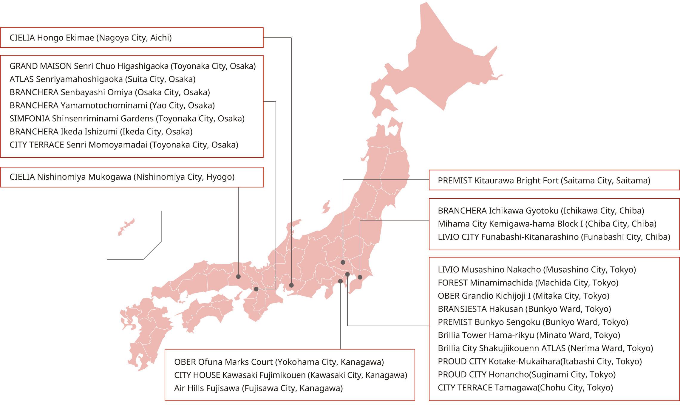 It is said there are approximately 1,030,000 aged condominiums constructed under the former earthquake resistance standards (those of 1981 or before). Lack of aseismic capacity, aging buildings and facilities, aging residents as well as the question of how to renew condominiums have become social issues. The Haseko Group has established a framework to provide one-stop support for a variety of phases (including grasping of actual conditions through the evaluation of aseismic capacity, building diagnosis, and/or equipment diagnosis, deliberation of policies for rebuilding or life elongation considering the results of said evaluation and/or diagnosis, building of consensus between residents, design, and construction work) to cope with condominium renewals. The Group will create new values by coping with condominium renewals, making the most of its experiences in condominium construction, thereby contributing to the resolution of social issues.