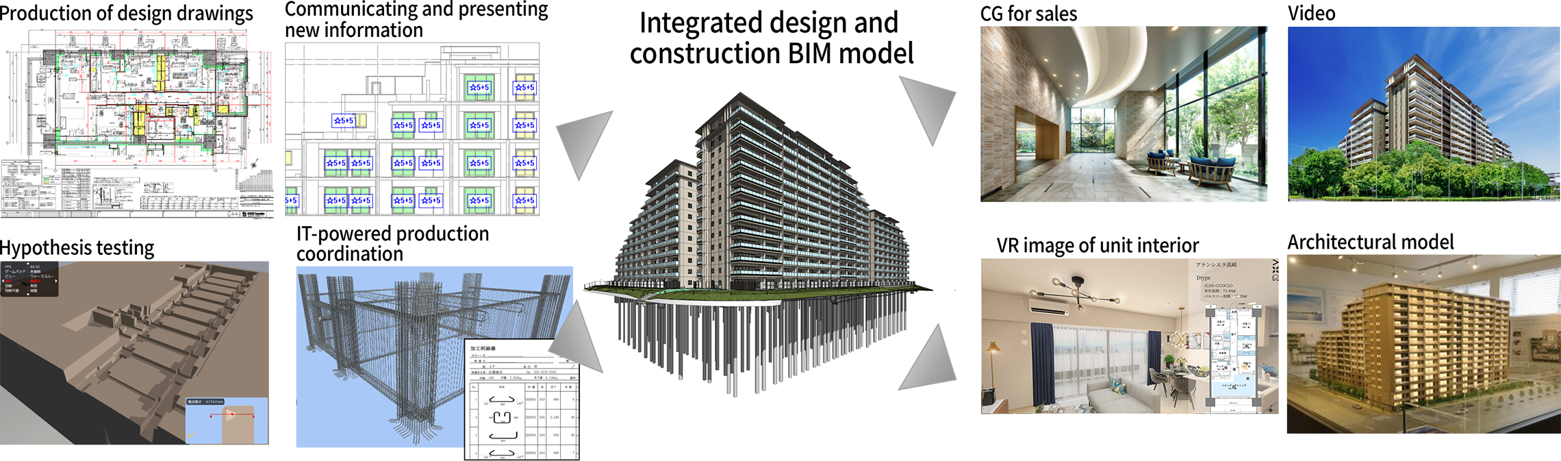 Haseko Corporation developed the HASEKO-version BIM, a 3D design technology adapted specifically for condominiums. The HASEKO-version BIM has been in use since 2012, and was established as the operational system for 100% of all new design projects commenced in fiscal 2020. In fiscal 2021, it was likewise deployed across 100% of construction sites. At present, we are expanding its use in sales activities, and plan to continue its progressive roll-out across various domains of the Haseko Group as a whole, such as maintenance management/renovation.