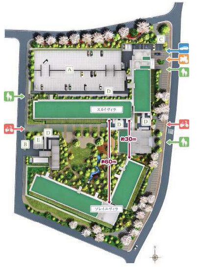 | 総戸数 | 317戸(住戸)(スカイヴィラ181戸、ソレイユヴィラ136戸) 他に集会室等4戸、ゲストルーム2戸 |
