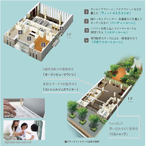 - 4.フィットネススタジオ、パーティールーム、スタディルーム、子育てサポートルームなどを備えた共用施設