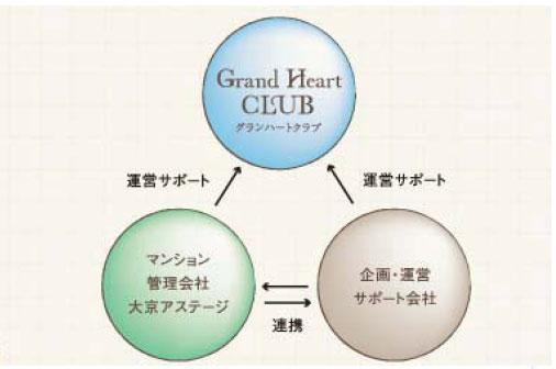 「Grand Heart CLUB」(グランハートクラブ)の運営は、管理会社の大京アステージおよび運営サポート会社が事務局業務を行います。
