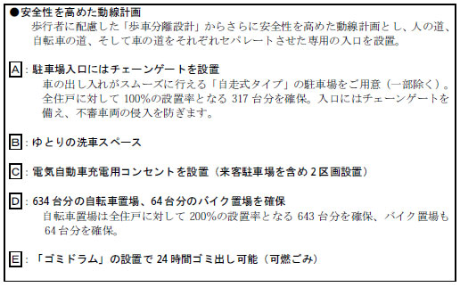 社団法人大阪府防犯協会連合会が実施主体となり、防犯上犯罪に遭いにくい構造、設備の基準を満たしていると認められる「防犯モデルマンション」に登録予定。 - ・24時間有人管理体制