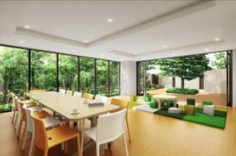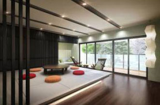 - ふれあいスパ(大浴場)やふれあいスタジオ(防音仕様の音響ルーム)、ふれあいプラザ(多目的ルーム)、ふれあいヴィラ(ゲストルーム)、ふれあいテラスなど充実した共用空間で家族とのコミュニケーションを育む。