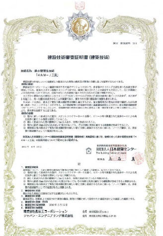 長谷工コーポレーションと総合加工管メーカーであるジャパン・エンヂニアリングの2社が、共同開発した排水管の更新・更生工法『HAM-J工法(ハムジェイ工法)』について、財団法人日本建築センターの建設技術審査証明書(BCJ-審査証明-184)を取得しました。