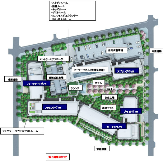 本プロジェクトは、「名古屋市都市計画扇町2丁目地区計画」により、第1期(北街区278戸=「ヴィラス星ヶ丘の森」)と第2期(南街区約200戸超・2012年10月着工予定)を合わせた総戸数480戸以上となる、名古屋市内最大規模の街づくりとなります。