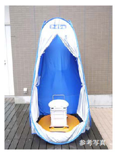 災害による断水で住戸のトイレが使えないという悩みを解消します。災害時に敷地内のマンホールに設置するだけですぐに利用できます。鍵付きテントでプライバシーにも配慮しています。