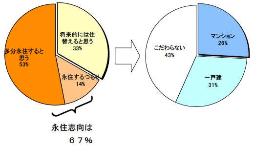 - ・立地条件とセキュリティなどを考えると都心あるいはその周辺での居住にはマンションは一番合理的。