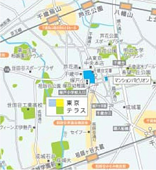 | 交通 | 京王線「千歳烏山」駅下車徒歩16分 または京王バス6分 「千歳台六丁目」バス停下車1分 小田急線「祖師谷大蔵」駅下車徒歩19分 小田急線「千歳船橋」駅より小田急バス5分 「千歳台六丁目」バス停下車1分 |