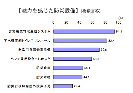 ...魅力を感じた防災設備しては、非常用飲料水生成システム94%