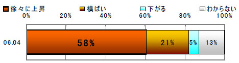 今回のアンケートより、初めて設問した『今後地価はどうなると思いますか』に対し、『徐々に上昇すると思う』と回答された方は58%。6割近いお客様が、今後の地価動向は『上昇する』と予測されていることがわかりました。『上昇する』と回答した理由としては、2006年3月に発表された、"公示地価上昇(関西圏では商業地の上昇)の影響"や、"都心部の上昇"を挙げる声が見られます。