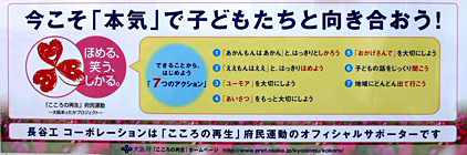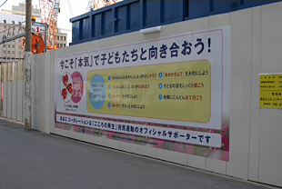 弊社では2006年11月17日より、順次、大阪府下の建築現場にフェンスシートを掲示し、『こころの再生』府民運動のPR活動を展開いたします。