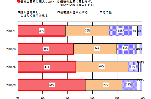 来訪者の内「価格上昇前に購入したい」と回答した人は、2006年1月調査の38%から増加し、9月には54%と半数を超えました。