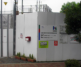 ○作業所のゲート付近仮囲い、工事看板下等に表示