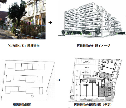 | 「住吉南住宅」【建替前】 | (仮称)「住吉南住宅」建替計画【建替後】 | |
