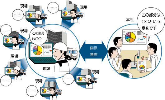 ○離れた場所にいてもリアルタイムに情報のやり取りを行い、お互いに意思疎通を図りながら円滑に会議を進める