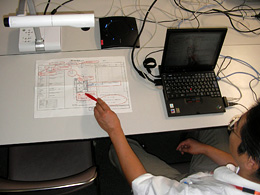 ○パソコン上のソフトのみならず、図面やパンフレットなどの印刷物も書画カメラを利用することで同じ画像として共有する事が可能