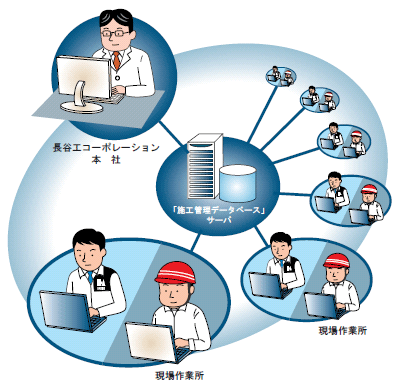『C-Sight』は、本社と各作業所を繋ぐネットワークシステムで、各作業所のパソコンから、所員だけでなく、協力会社の職長も簡易な操作で必要事項を入力でき、入力された情報は本社側のデータベースで一元管理されます。