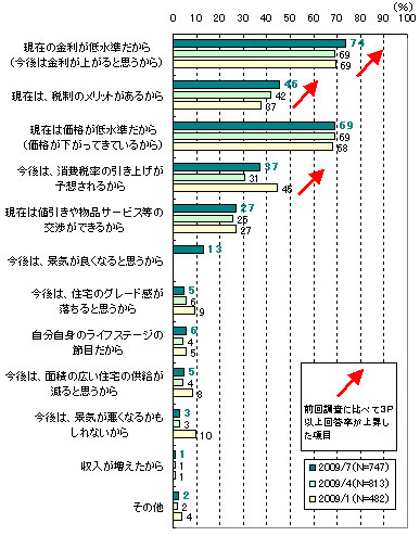 【"現在の金利が低水準だから""価格が低水準""税制のメリットがあるから"が上位】