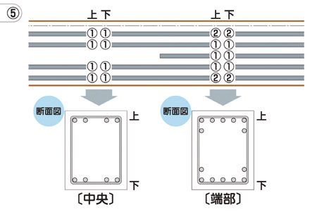 (5)梁の情報は、1段筋、2段筋の有無・本数を表示します。