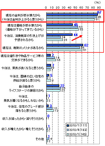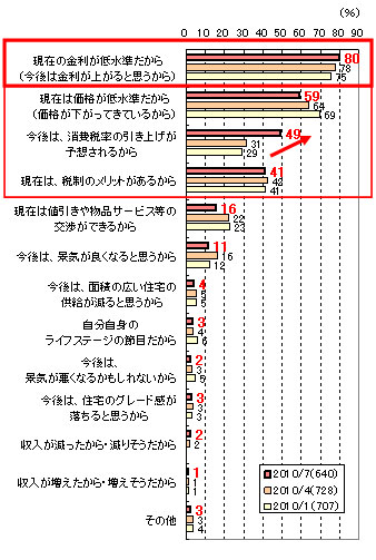 【"現在の金利が低水準だから""価格が低水準""税制のメリットがあるから"が上位】