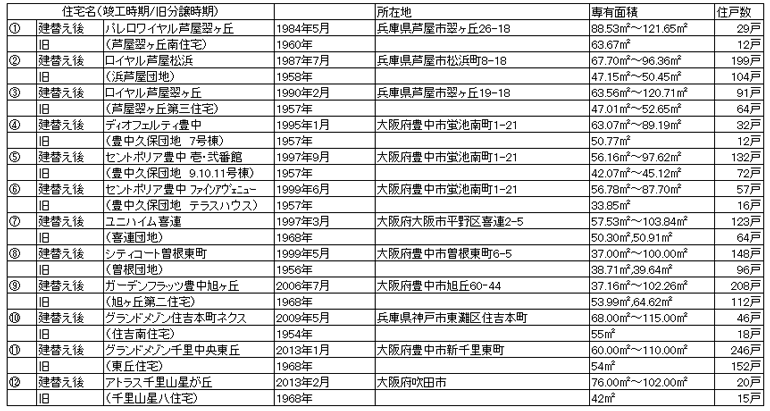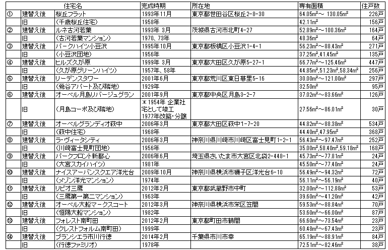 当社は、1984年のパレロワイヤル芦屋翠ヶ丘(兵庫県芦屋市)の建替え事業に携わって以来、「行徳ファミリオ建替え事業」を含め首都圏で14物件、近畿圏で12物件、合わせて26物件のマンション建替えを事業協力者、設計・施工会社として推進してきました。