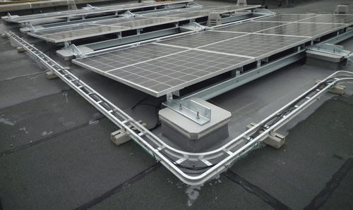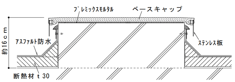 『ソーラーパネル設置用の低基礎』は、GRC製のベースキャップとコンクリート基礎で構成させています。コンクリート基礎の上部にプレミックスモルタルを塗布し、ベースキャップを乗せ、ソーラーパネル架台のアンカーボルトで緊結します。