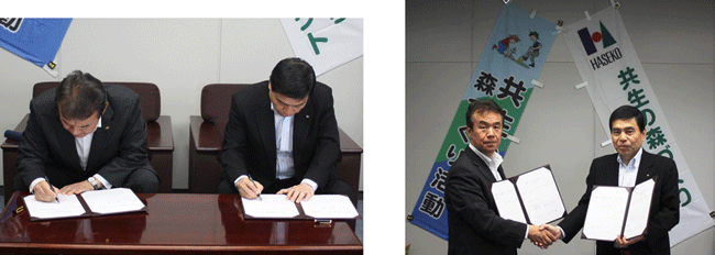長谷工グループ(代表企業:長谷工コーポレーション)は、2013年6月20日に堺泉北港ポートサービスセンタービル(大阪府泉大津市)の港湾局長室において、大阪府港湾局と「堺第7-3区共生の森づくり共同宣言」の調印式を行いました。 今後、長谷工グループでは、「共生の森」※1において、5か年、5,000㎡の区域で下刈りや樹木の植栽、管理を行うこととしています。また、大阪府は、活動地の提供や、企業協力のPR等を行います。 長谷工グループでは、CSR活動の一環として、毎年、社員やその家族に対して環境に関するイベントなども併せて開催し、楽しみながら環境意識を高めることができるよう活動を促進していく予定です。 ※1 大阪府は、「共生の森づくり」基本計画を策定し、産業廃棄物処分場である堺第7-3区(大阪府堺市西区築港新町地内)(280ha)内の100haの区域において、府民、NPO、企業等と協働して森づくりを進めています。