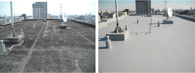 ・下地調整の必要がなく、既存防水層の撤去が不要なため、撤去作業、残材処理、新規の下地作りや