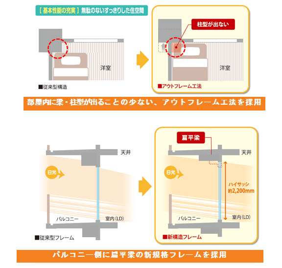・柱・梁型が出ることの少ない住空間や広さ・明るさ・通風などの住宅としての基本性能は更に充実