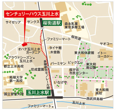 多摩都市モノレール線・西武拝島線「玉川上水」から徒歩10分、 多摩都市モノレール線「桜街道」から徒歩4分 |