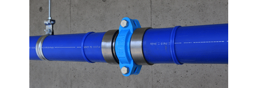 ステンレス製の溝をポリエチレン管プレハブユニット端部に組み込んだサップス工法で実績のある接合。主に大口径のピット内配管等で使用します。