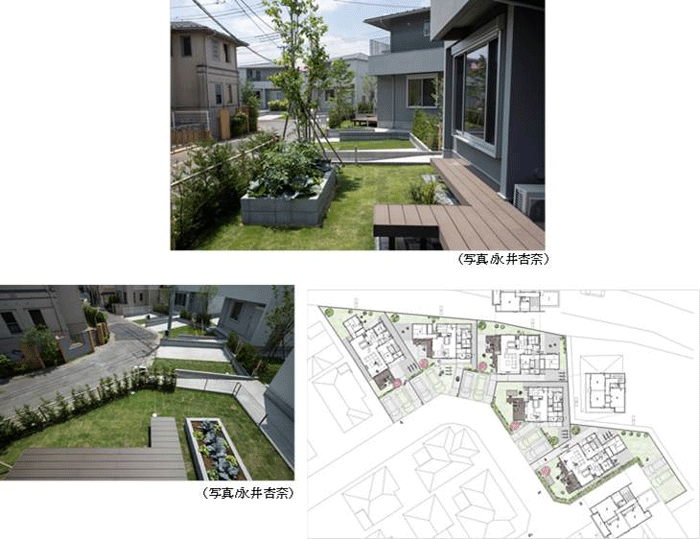 建築家藤村龍至氏(アール・エフ・エー)と協働し、2段植栽や2階のセットバックなど既存のまちなみの形態ルールを尊重しながらも、これまでの街区とは異なった、緩やかに連なる庭や大きなウッドデッキを持つ街区を計画。外部空間に積極的に開かれた住宅と外部空間が互いに連続した街区により、ニュータウンに新しい価値観を持った入居者を招き入れ、街の活性化・新しいコミュニティの在り方の提案を図りました。