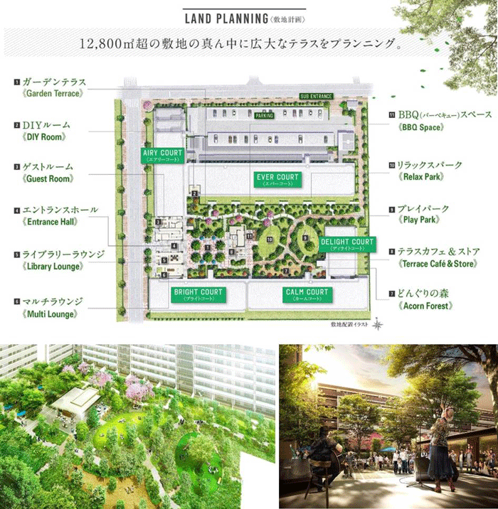 「コト」を叶えるための建物配棟計画、1万3千本以上の木々や花々、カフェ、バーベキュースペース、ラウンジ、DIYルームなど事前のアンケートで希望の多かった共用施設などの「コト」を演出するための広大な舞台。それは、「入居者の方々にとって本当の資産価値となるマンションとは何か」という問いに対する私たちの答え「マンションコミュニティという無形の資産価値」から生まれました。