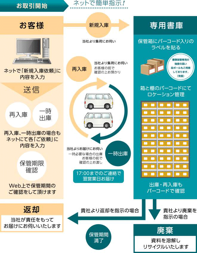 オフィス内で保管するよりも安価でお預けが可能となり、オフィススペースを有効活用していただけます。