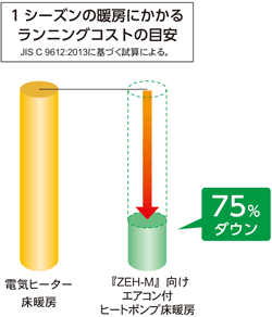 ・1シーズンの暖房にかかるランニングコストを抑制(電気ヒーター床暖房使用時の約1/4)