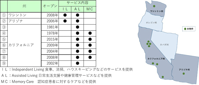 MRE社は、不動産の取得・開発・運営を自ら行っており、MSL社が行うシニア住宅事業においては1990年より開始し、既存物件の取得を通してリノベーションやサービス・運営企画の改善等を図ってきております。