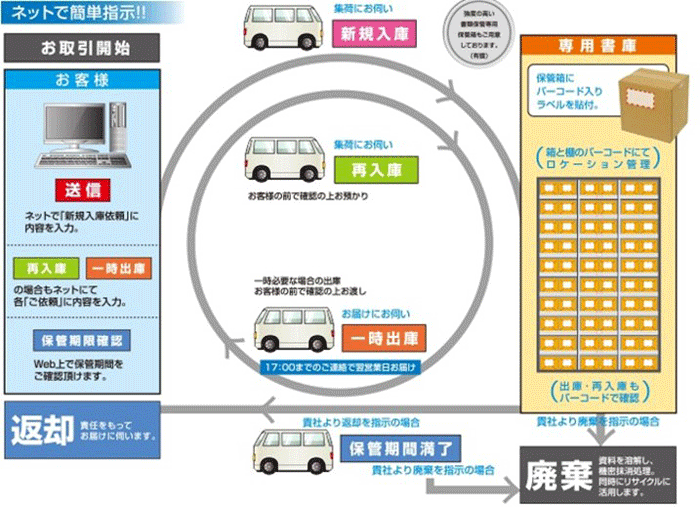 事業内容:文書管理のための総合コンサルティング、文書等の保管、集配サービス、倉庫業務