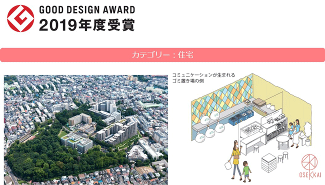 長谷工グループは、このたび、公益財団法人日本デザイン振興会が主催する『2019年度グッドデザイン賞』に、「プライムメゾン江古田の杜・グランドメゾン江古田の杜」と「OSEKKAI(おせっかい)プロジェクト」の2件が受賞しました。