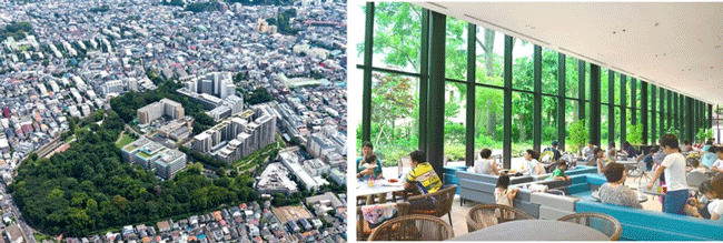 子育て世帯向け賃貸・分譲住宅、高齢者向け賃貸住宅・単身者向け賃貸住宅、老人ホームに、保育所、学童クラブ、レストラン、子育て支援施設、スタジオ、コンビニ、薬局を併設した多世代交流・循環型まちづくり。「コドモイドコロ」のあるまちをテーマに里山の緑を共有し、人と人、人とまちの「結び付き」を育むことを目指しました。