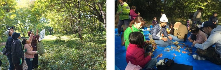 ※子供連れの家族は保全地域内に落ちている松ぼっくりやどんぐり、つるなどで"クリスマスリース"の自然工作も実施