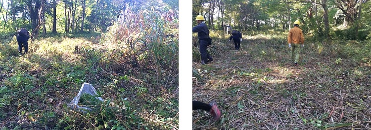 本年9月・10月に日本各地に甚大な被害をもたらした「台風15号・19号」の影響により、当保全地域においても落枝・落木の被害が大量に発生していたため、参加者全員で協力し、この片付け作業に取り組みました。また、例年に比べ若手社員も多く参加したため、力仕事である木柵交換作業にも積極的に励みました。