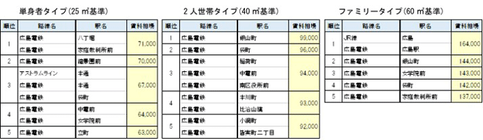 ・広島市 S:「八丁堀」「家庭裁判所前」駅(71,000円) D:「銀山町」駅(99,000円) F:「広島」「広島駅」駅(164,000円)