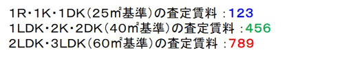 本賃料査定は、当社管理物件他、当社が信頼できると判断した情報に基づく2019年1~12月の賃貸募集データ約14.2万件を基に、独自の分析調査により算出したものです。間取りタイプを、下記の3つに分類し、それぞれのタイプに基準面積を設定したうえで、駅別に査定を行っております。
