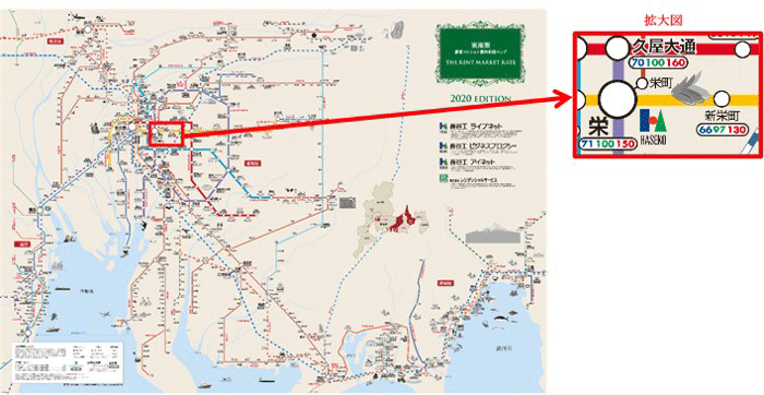 東海圏の主要路線を網羅したマップで、賃料相場を俯瞰して把握することができます。大判サイズで見易さを重視しています。