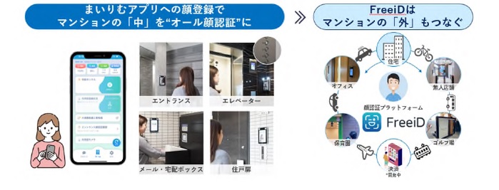 一方、DXYZが開発・提供する「FreeiD」は、鍵や財布・スマホを持つことなく、1度の顔登録で『顔ダケで、世界がつながる。』顔認証プラットフォームです。住宅領域では、国内初※1の鍵が一切不要となる「オール顔認証マンション」を実現し、2021年1月以降36棟(2023年11月末時点)に導入しております。