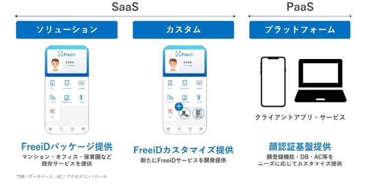 マンション・オフィス・保育園などFreeiDのパッケージサービスを提供する「ソリューション」、顧客ニーズによりFreeiD・顔認証サービスをカスタマイズする「カスタム」、顧客アプリやサービスに顔登録・保存・認証等の顔認証基盤を提供する「プラットフォーム」の3事業を展開しています。