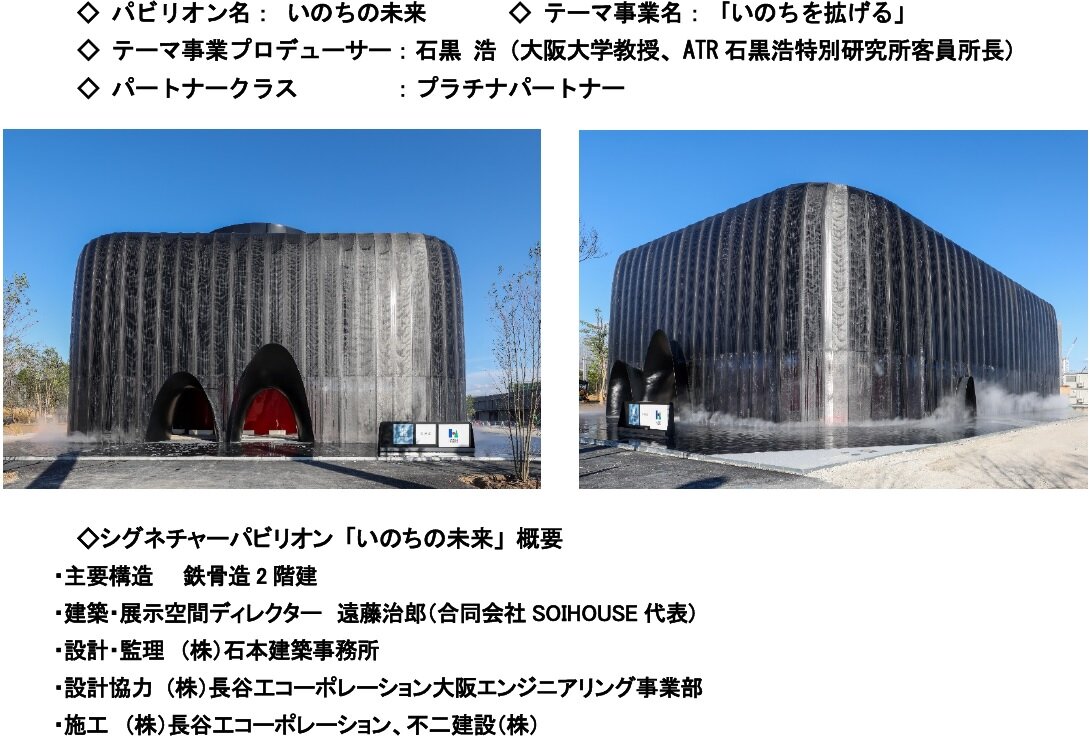 長谷工グループ(代表企業:㈱長谷工コーポレーション、本社:東京都港区 代表取締役社長:池上 一夫)は、2025年日本国際博覧会(大阪・関西万博)でのテーマ事業「シグネチャーパビリオン(※)」にて石黒 浩テーマ事業プロデューサー(いのちを拡げる)がつくる「いのちの未来」館(以下「本館」という)にプラチナパートナーとして、本館を設計協力・施工する現物提供協賛を進めていましたが、10月17日(木)に2025年日本国際博覧会協会への引渡しを完了いたしました。