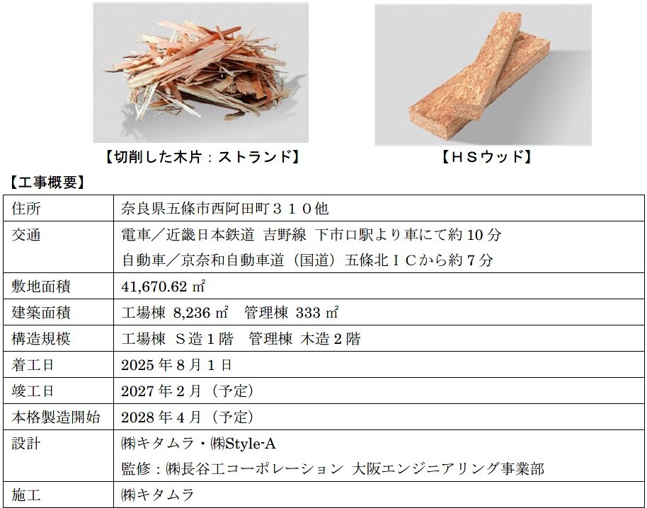 ㈱長谷工コーポレーション(本社:東京都港区、代表取締役社長:熊野 聡、以下「当社」)は、2025年8月より奈良県五條市にて、国産スギを利用して安定品質を実現する新たな木質建材「HSウッド(長谷工サステナブルウッド)」の製造を目的とした自社工場(以下「本工場」)の建設に着手しました。本工場は2027年2月に竣工し、製造設備のライン構築などを経て、2028年4月本格製造の開始を予定しています。
